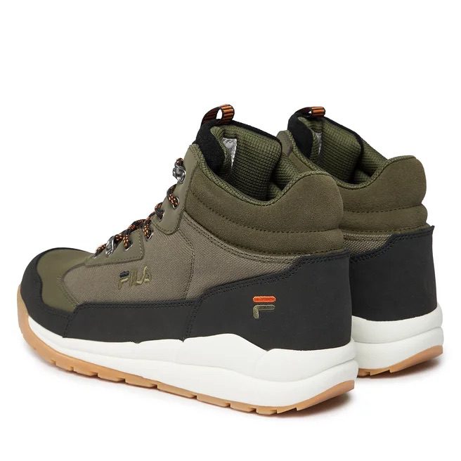 Fila αρβυλάκια λαδί, με αντιολισθητική σόλα και memory foam πάτο. Είναι  αδιάβροχα, με εσωθερμική επένδυση και ελαστικά κορδόνια. Κατάλληλα τόσο για χιόνι όσο και για ορειβασία. Θωρακίζουν το πόδι από τις αντίξοες καιρικές συνθήκες, ενώ προσφέρουν ένα ελαφρύ, σταθερό περπάτημα.