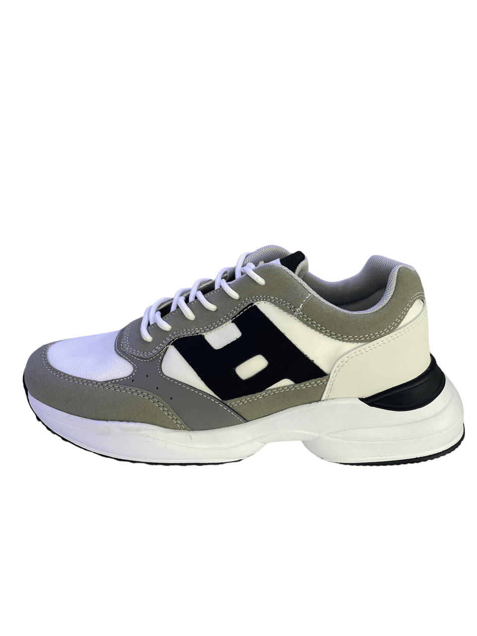 Ανδρικά chunky sneakers σε λευκό χρώμα με γκρί και μαύρες λεπτομέρειες,