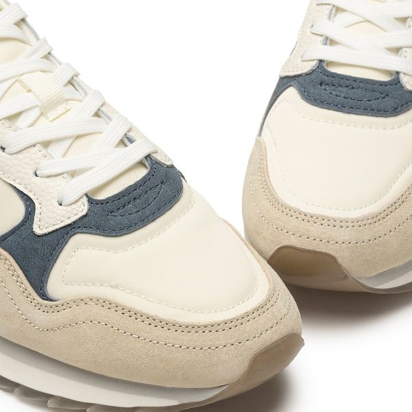 Ανδρικό Sneaker Hoff, σε λευκό χρώμα με λαδί και μπλε λεπτομέρειες, κατασκευασμένο από suede δέρμα και κομμάτια υφασματος.
