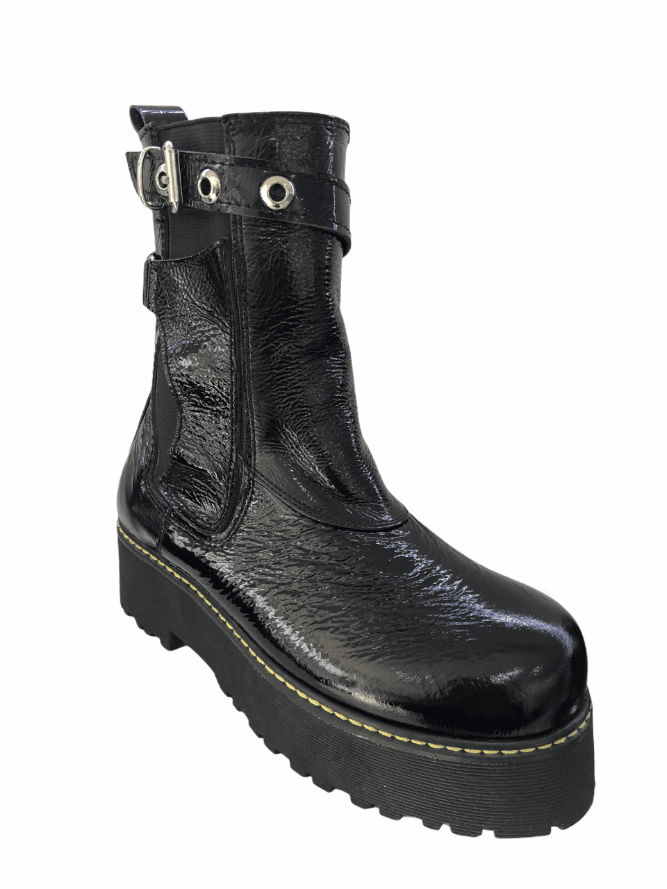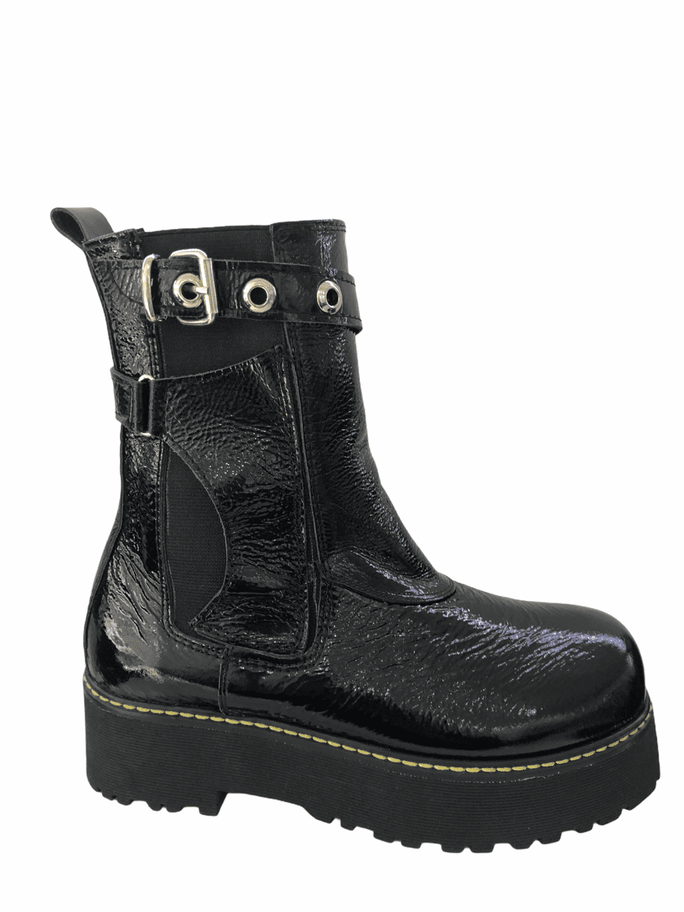 Bike ankle booties platform δίσολο από φυσικό -μαλακό γνήσιο δέρμα λουστρίν