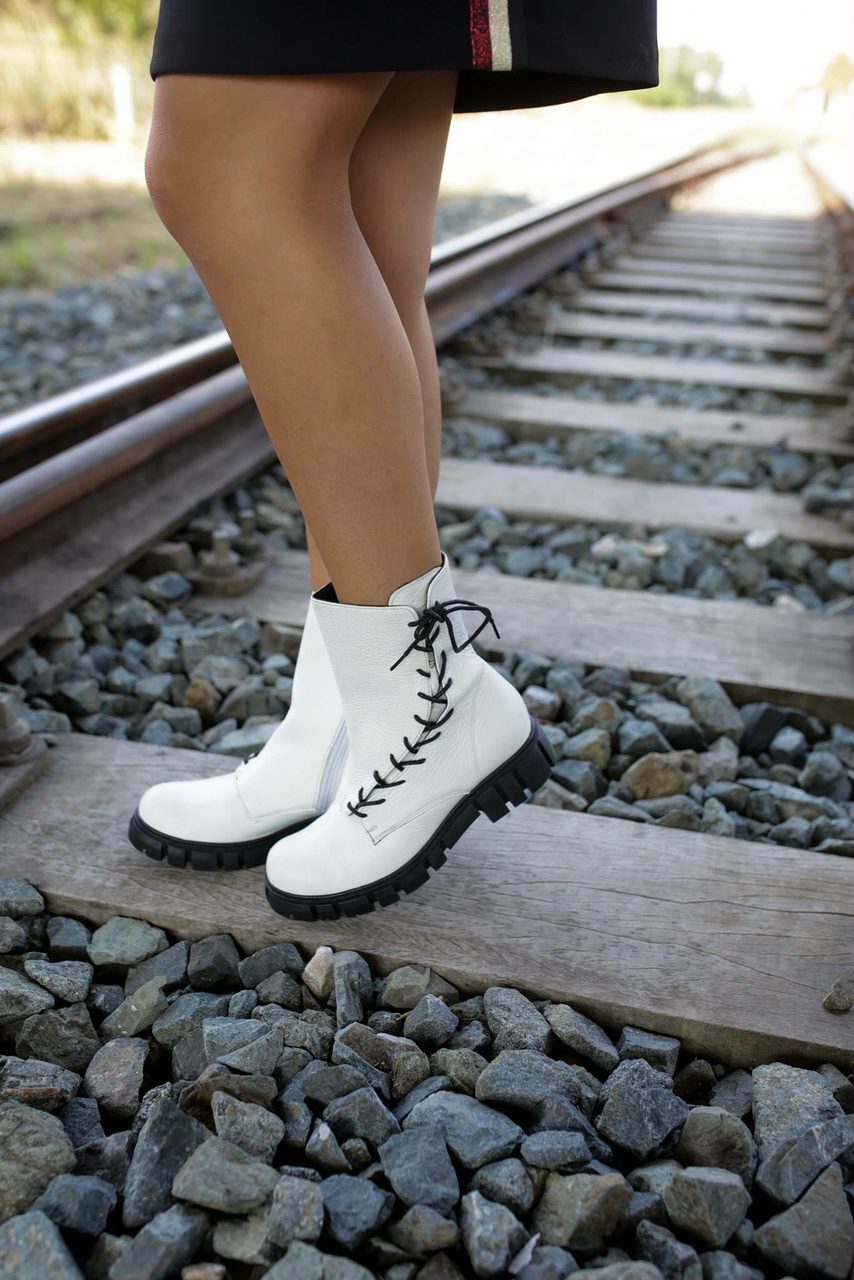Bike ankle booties από φυσικό γνήσιο δέρμα σε χρώμα λευκό