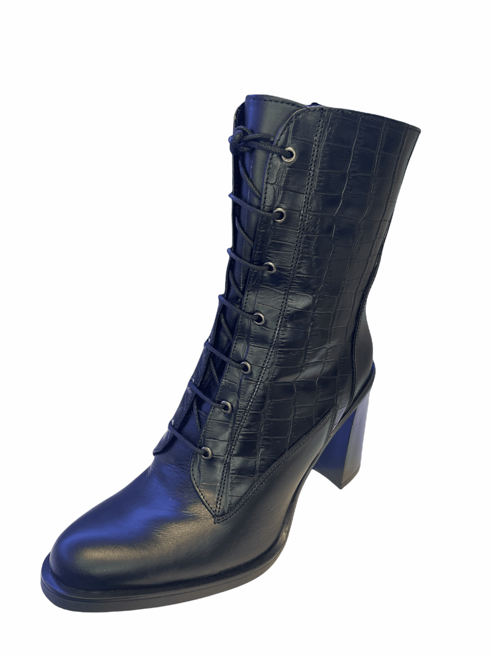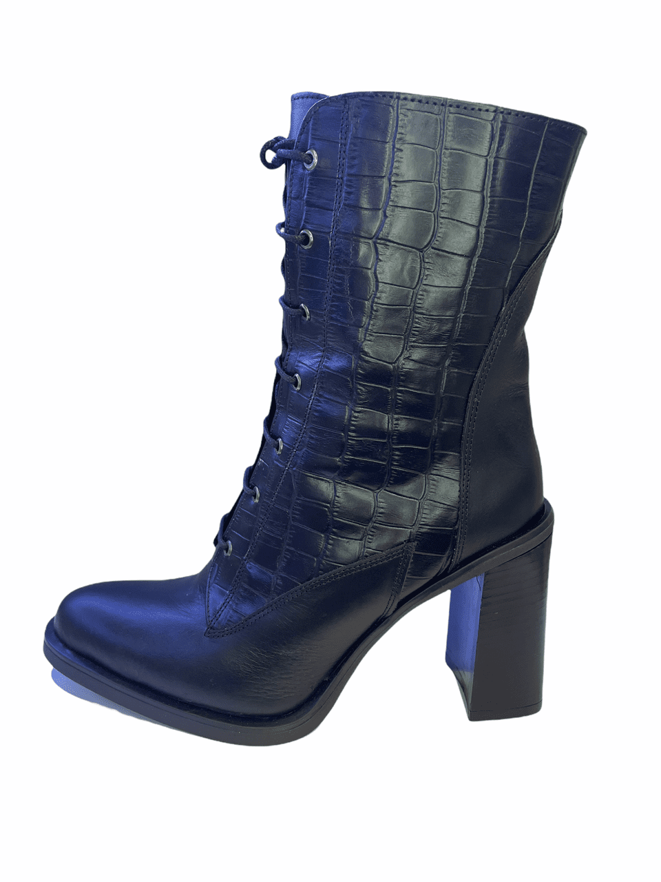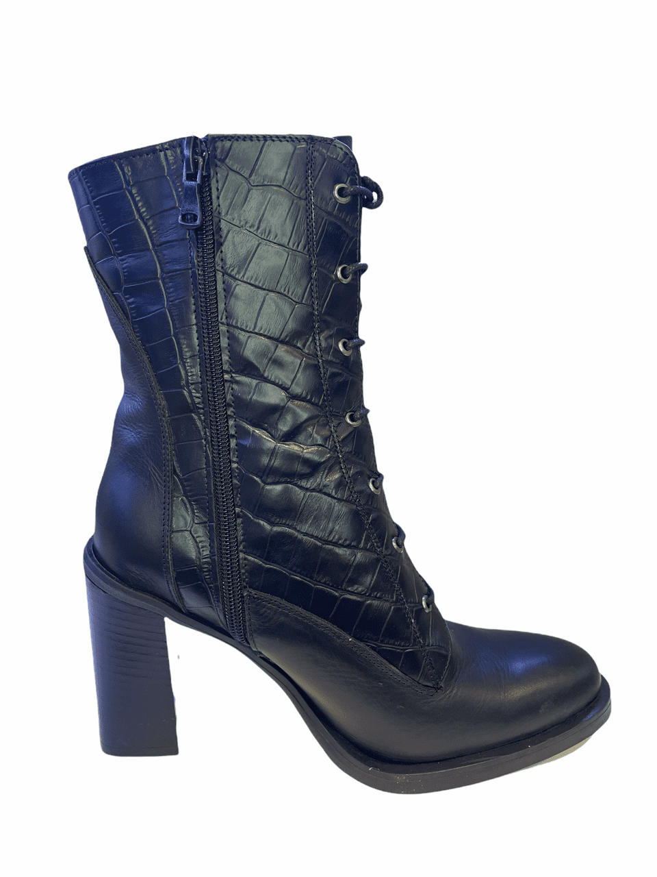 Μαύρα δερμάτινα ankle boots με κορδόνια και εσωτερικό φερμουάρ