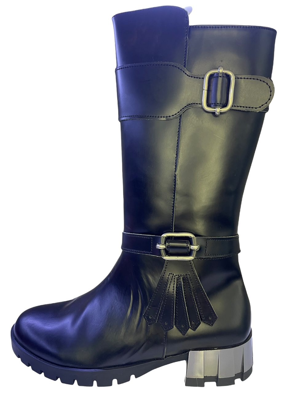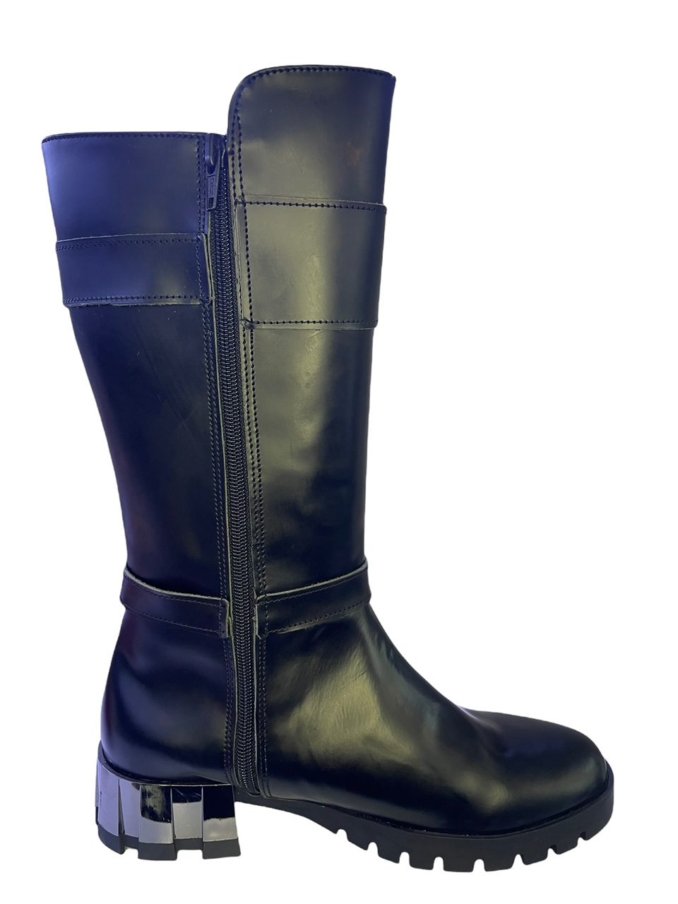 Μαύρη μπότα 3/4 σε γνήσιο δέρμα φλορεντίκ