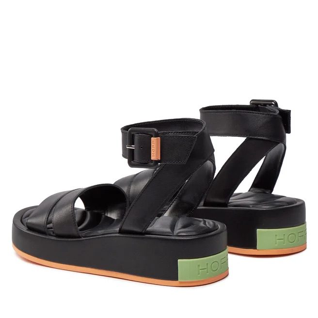 Γυναικεία πέδιλα Hoff, σε μαύρο χρώμα με χρωματιστές λεπτομέρειες, κατασκευασμένα από γνήσιο δέρμα. Διαθέτουν αντιολισθητική σόλα, ενώ ο αντικρασδαμικός μαλακός πάτος τους, από υλικό υψηλής πρόσφυσης, προσαρμόζεται στη φόρμα του ποδιού σας. Αποτελούν μια safe και στυλάτη επιλογή για άνετες και casual εμφανίσεις  κατά τη διάρκεια των ζεστών ημερών του χρόνου, καθώς το υλικό κατασκευής του είναι διαπνεόμενο και ανατομικό, ενώ η κατασκευή τους συνδυάζει την άνεση με το στυλ.