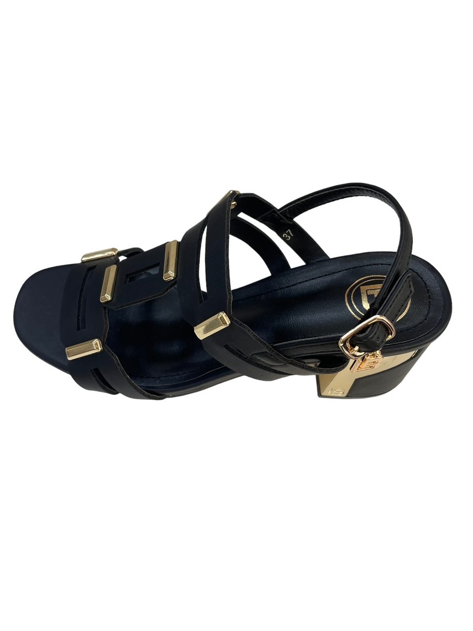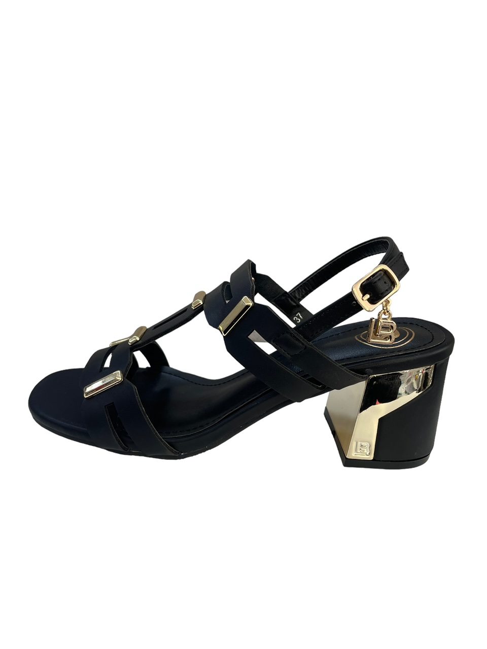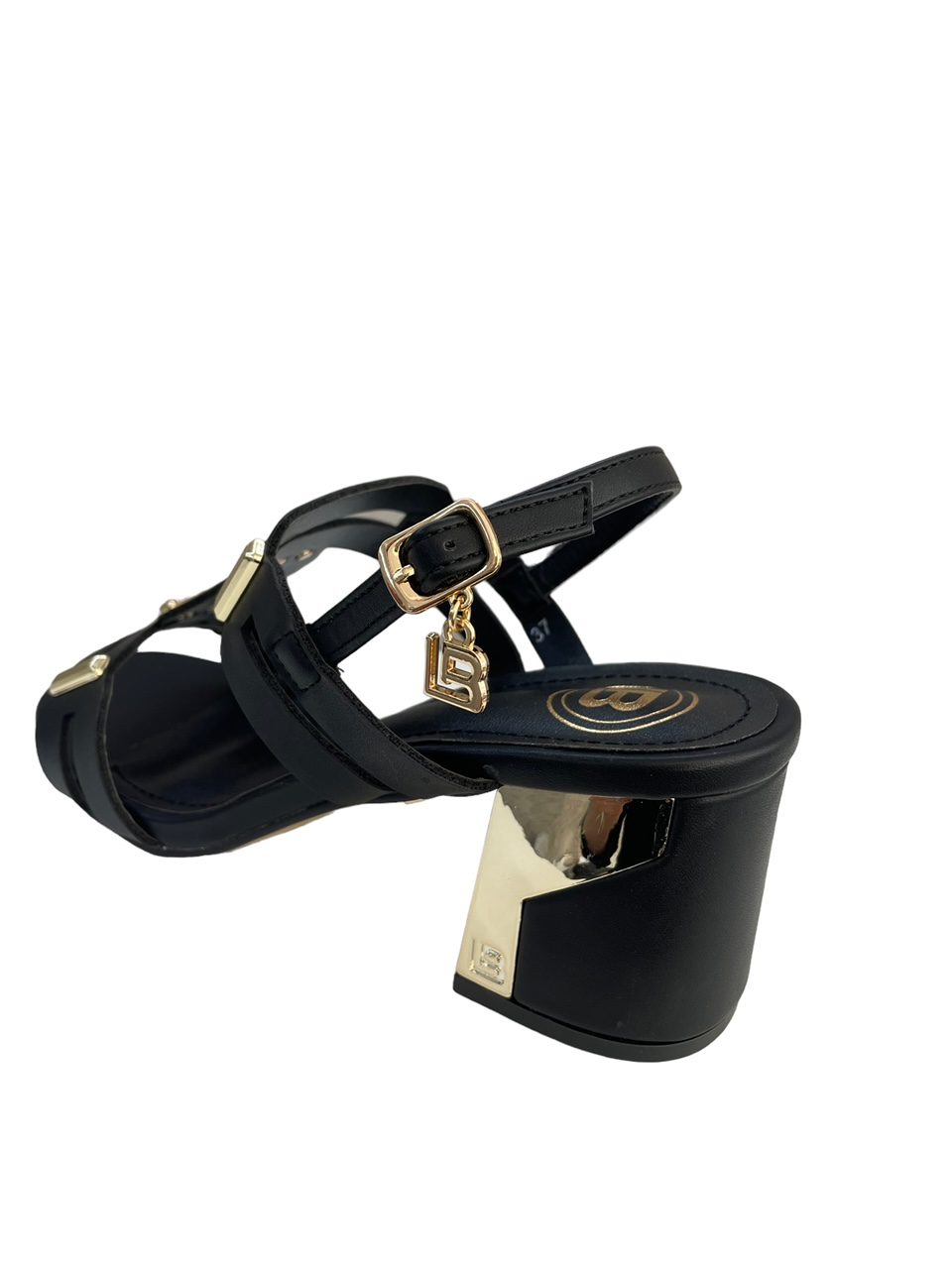 Γυναικεία basic black πέδιλα Laura Biagiotti  με χρυσές λεπτομέρειες