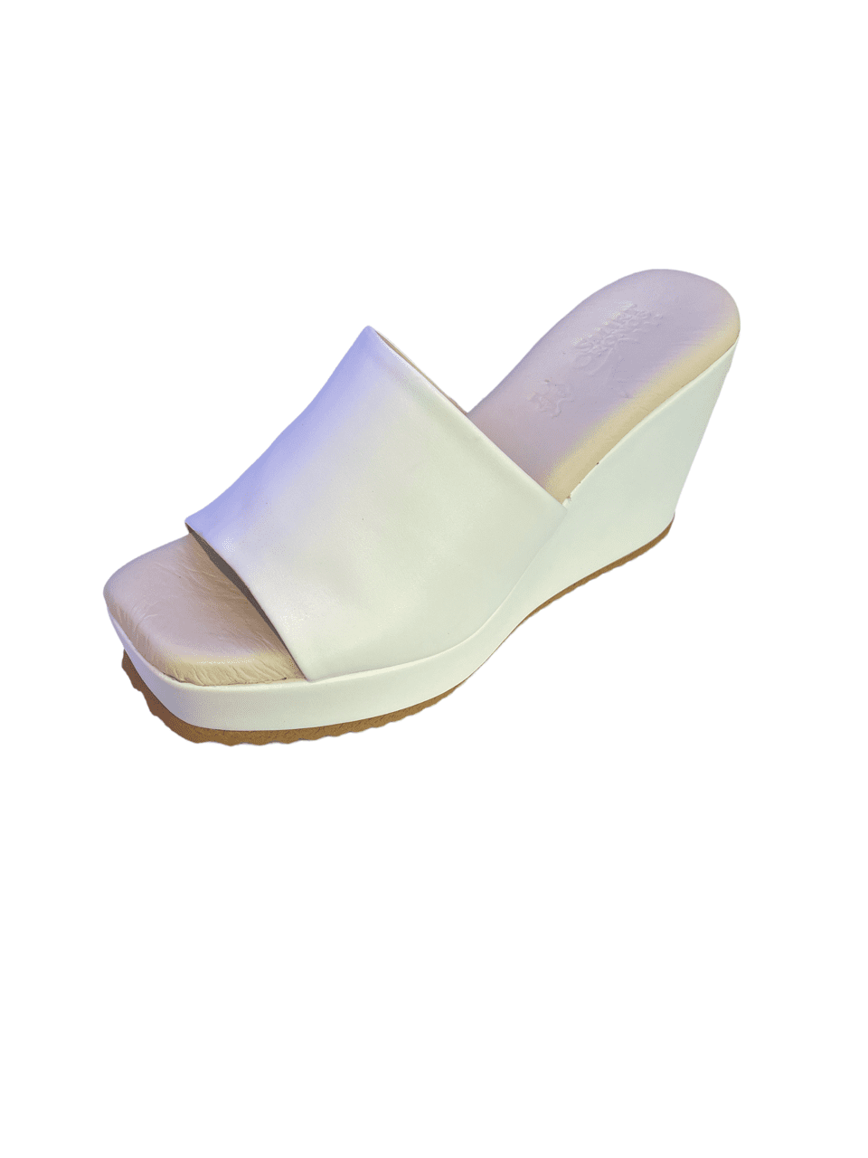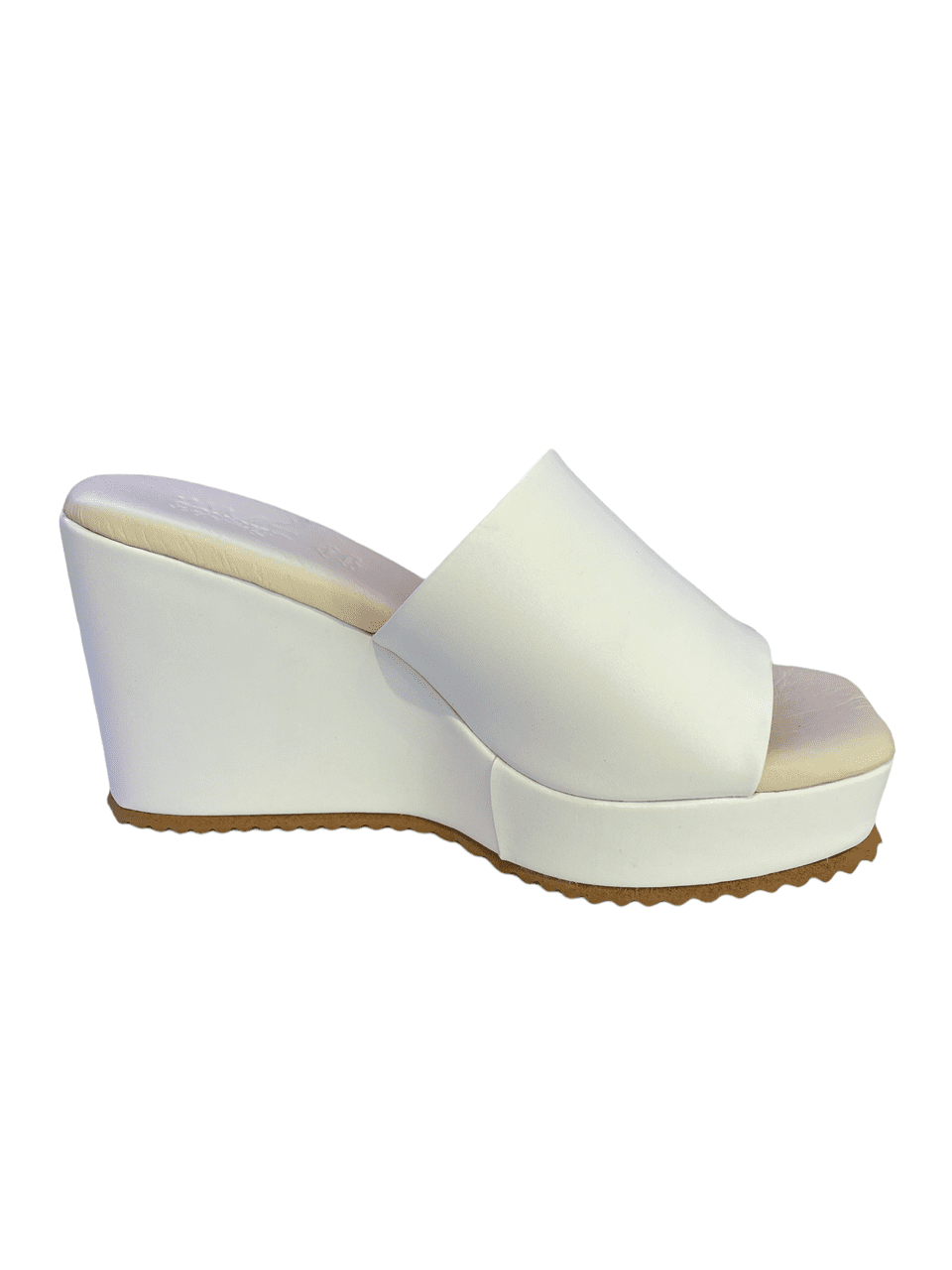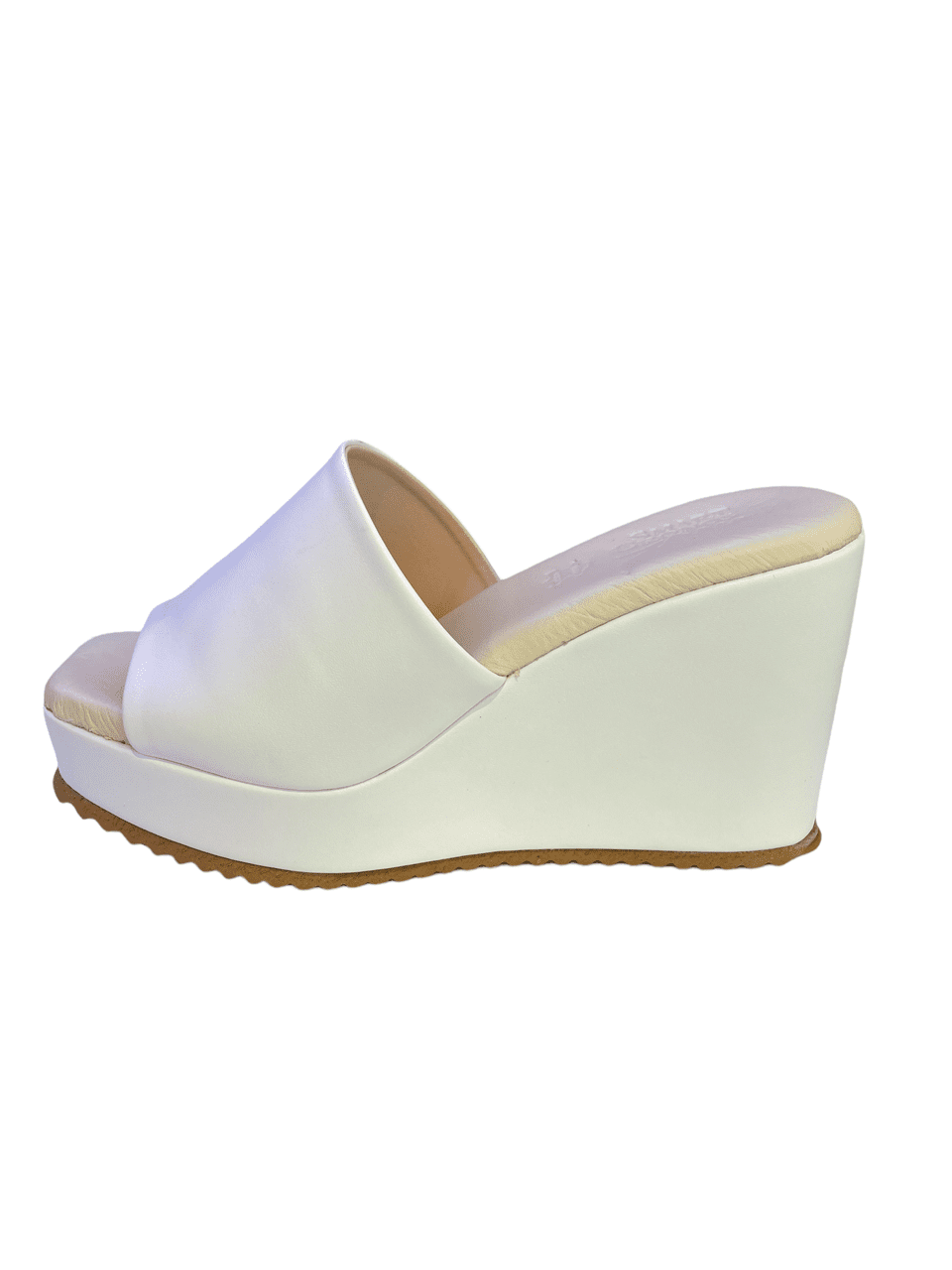 Δερμάτινα λευκά mules platforms με μια φάσα που αγκαλιάζει σταθερά το πόδι