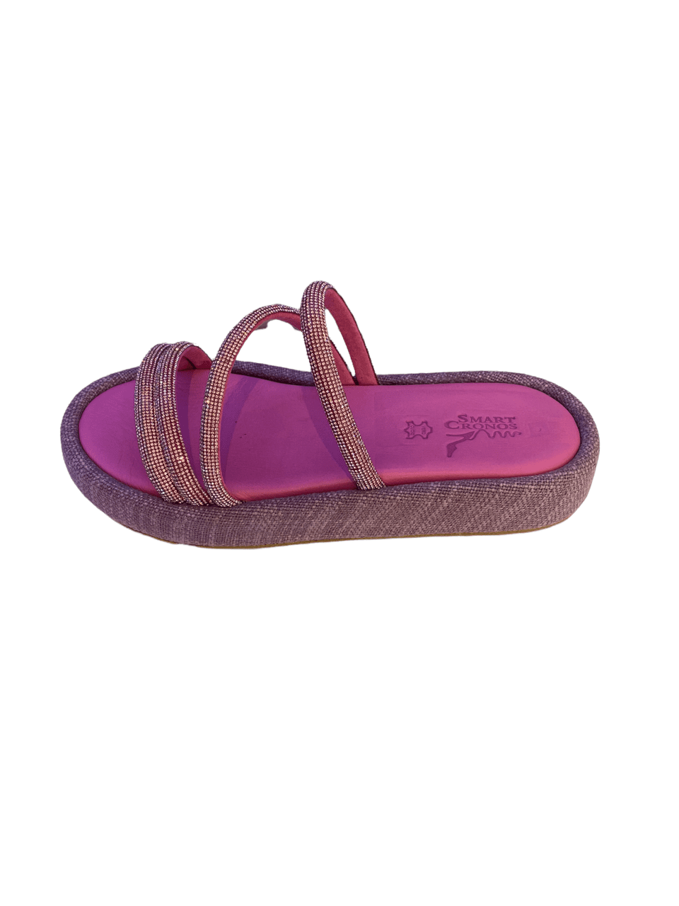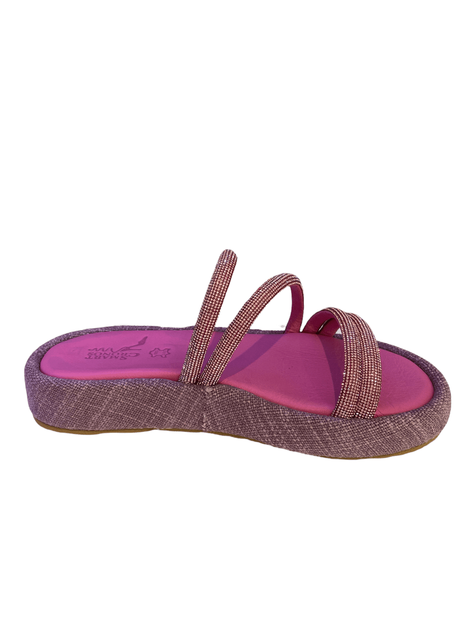 Fuchsia flatforms με 4 σειρές strass που αγκαλιάζουν σταθερά το πόδι
