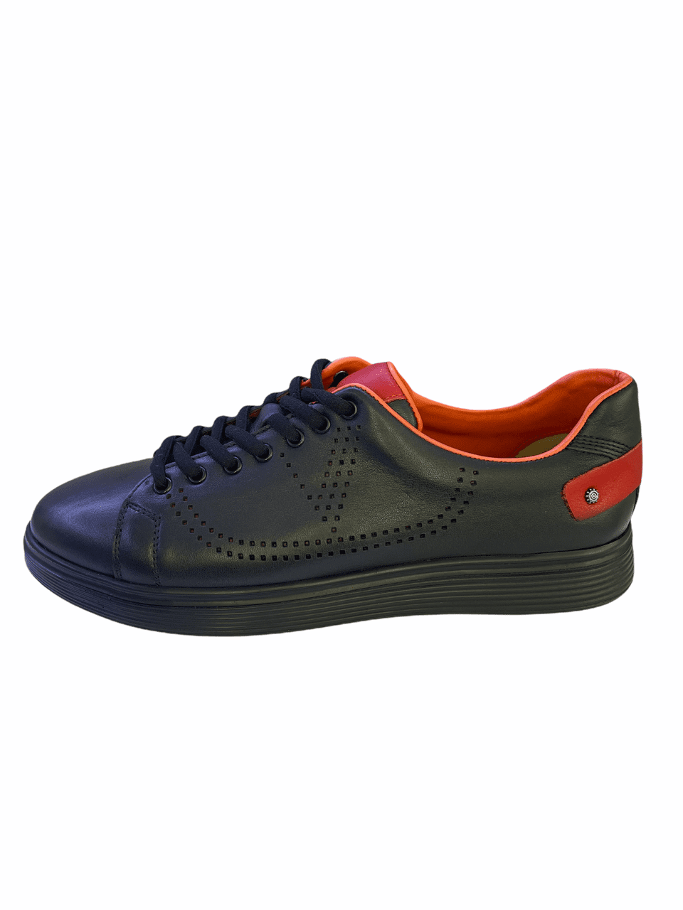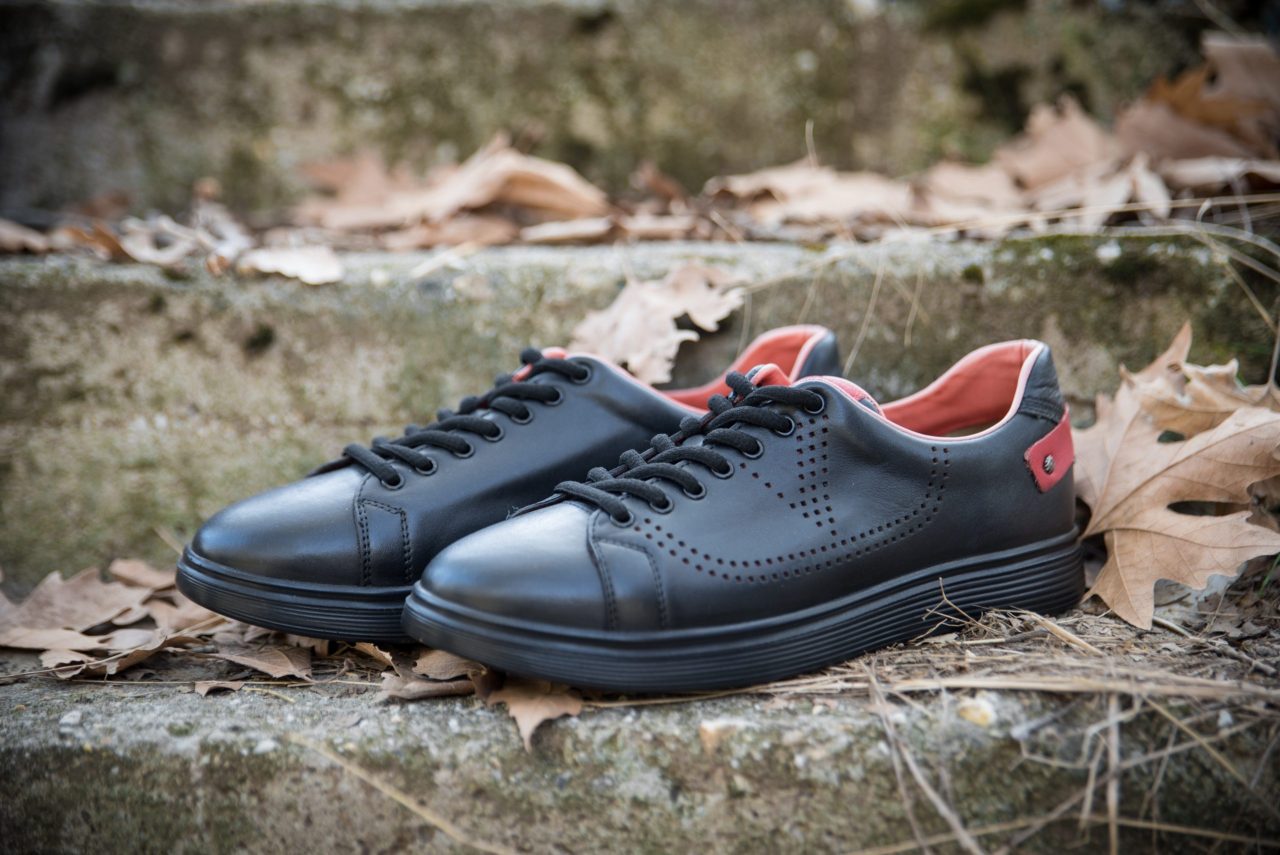 Ανδρικό δερμάτινο sneaker με κόκκινες λεπτομέρειες