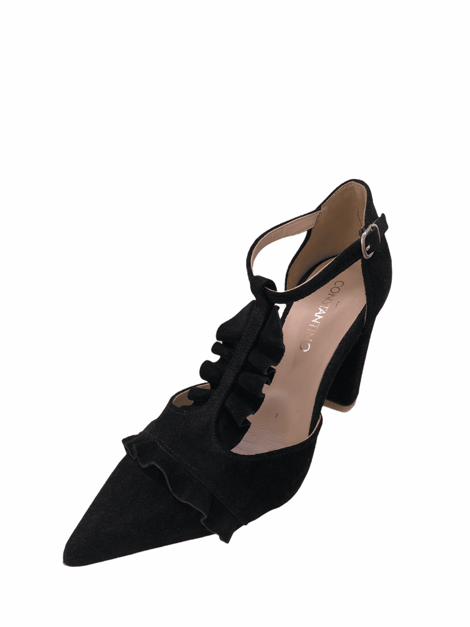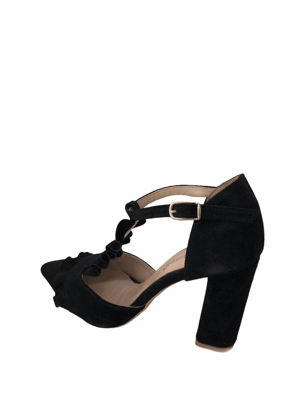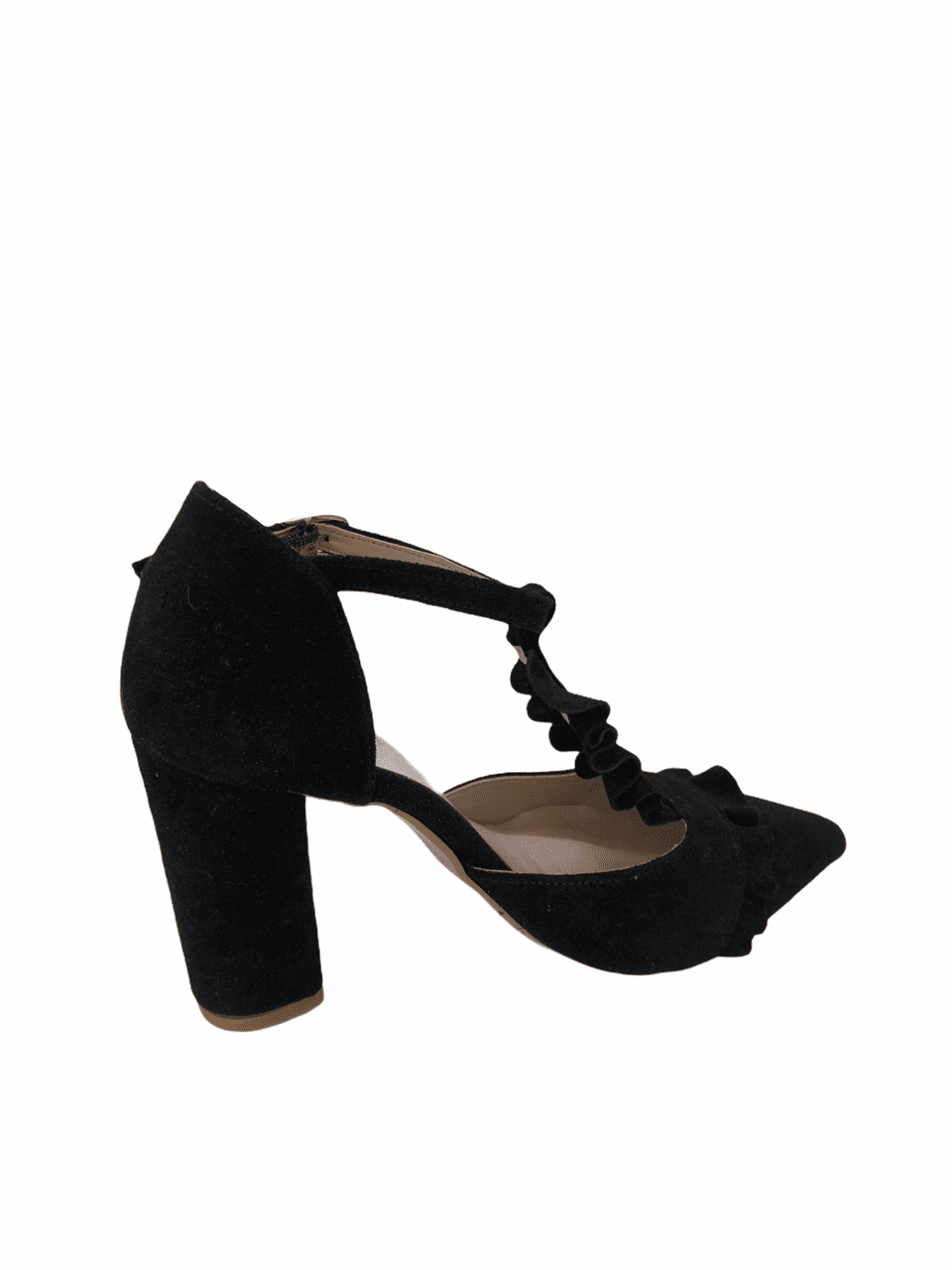 Γυναικεία γόβα μαύρη με μπαρέτα και βολάν στο κουτεπιέ